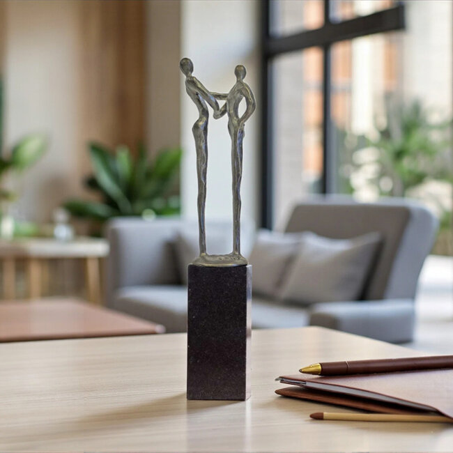 Met zijn elegante vorm en verbronsde uitstraling is dit beeld een blijvende herinnering aan oprechte waardering—perfect voor collega’s, relaties, vrijwilligers of iemand die persoonlijk veel voor je betekent. Dankzij de compacte hoogte van 18,5 cm komt het prachtig tot zijn recht op een bureau, balie of kast.