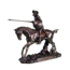 De figurine is uitgevoerd in een stijlvolle bronskleurige afwerking, wat het beeld een klassieke, kunstzinnige uitstraling geeft. De fijne details in het harnas, de lans en de houding komen prachtig naar voren door het spel van licht en schaduw in de bronslook.