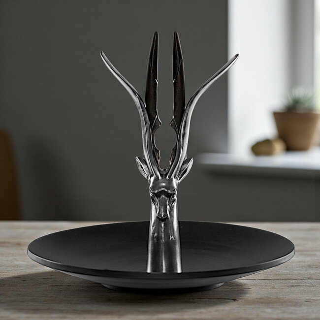 Herten werpen hun gewei jaarlijks af en het nieuwe gewei wordt groter, complexer en sterker dan het vorige. Het kunstobject Ge-Wij verwijst naar de gezamenlijke inzet ten behoeve van deze groei. Hoogte circa 30 cm.