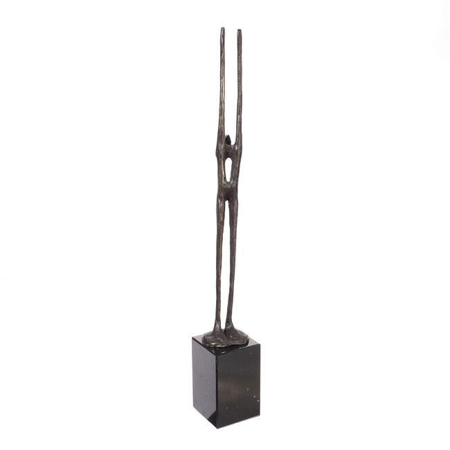 Progress. Oftewel vooruitgang. Slank sculptuur. Op marmeren sokkel. Tin gegoten en hierna verbronsd. Hoogte 44 cm incl. sokkel Lees meer.