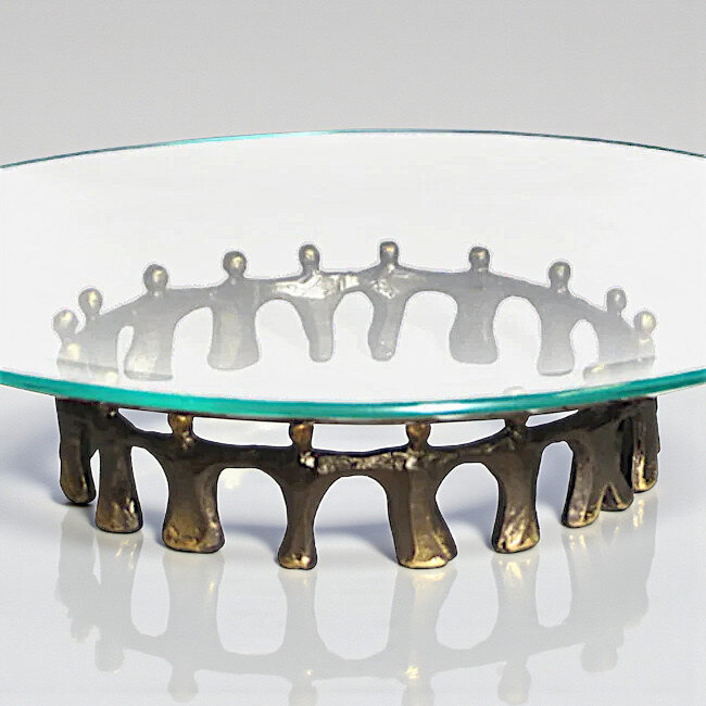 Schaal Together van glas en figuren zijn verbronsd.