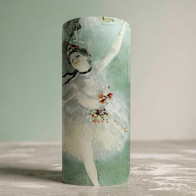 Breng de magie van het ballet naar huis met deze elegante reproductie van Danseuse sur Scène (1877), geïnspireerd op het werk van Edgar Degas. Degas was al vroeg gefascineerd door ballet en begon in 1872 met zijn eerste studies van danseressen. In zijn werk vermijdt hij de dramatiek van het podium en richt hij zich juist op de momenten achter de schermen. Net zoals hij bij paardenrenners de wereld vóór en na de race vastlegt, toont hij bij het ballet subtiele, ogenschijnlijk willekeurige composities met verrassende invalshoeken.