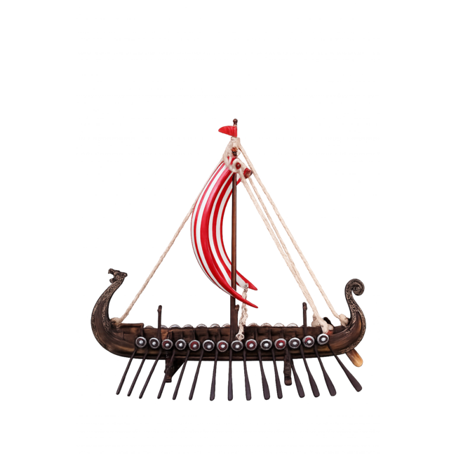 Van de gebeeldhouwde drakenkop tot de zorgvuldig aangebrachte plankenstructuur: elk detail vertelt het verhaal van de moedige krijgers die met dit schip onbekende werelden verkenden. Een tijdloos verzamelobject voor liefhebbers van Scandinavische geschiedenis.