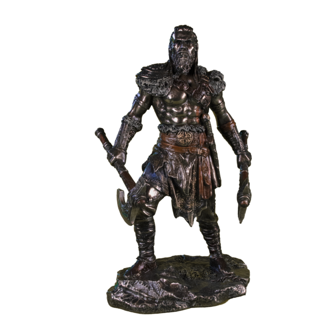 Viking Twin Axe Figurine – De Kracht van de Noormannen. Hoogte beeld 16 cm, hoogwaardig kunsthars.